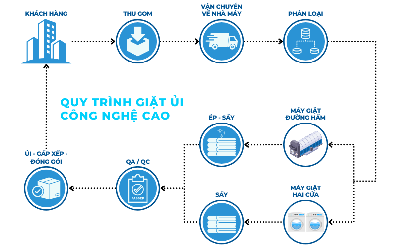 Sơ đồ quy trình giặt ủi công nghệ cao tại Giặt là Gila: